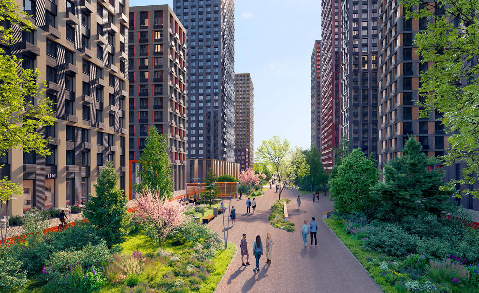 Внутреннее пространство жилого комплекса является приватным, безопасным и закрытым для посторонних. Вокруг комплекса расположена благоустроенная территория, занимающая более 7 гектаров, включающая озеленение и всесезонные детские и спортивные площадки. Благодаря мощеным дорожкам и зонированию площадок по возрастам, жители могут наслаждаться тихим и безопасным местом для прогулок, пикников и отдыха прямо под окнами комплекса.